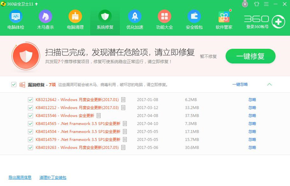 1.首先安裝360安全衛(wèi)士,選擇漏洞修復(fù),打好安全補(bǔ)丁,預(yù)防再次被攻擊