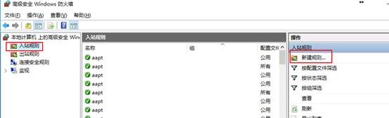 4、點擊入站規(guī)則,新建規(guī)則